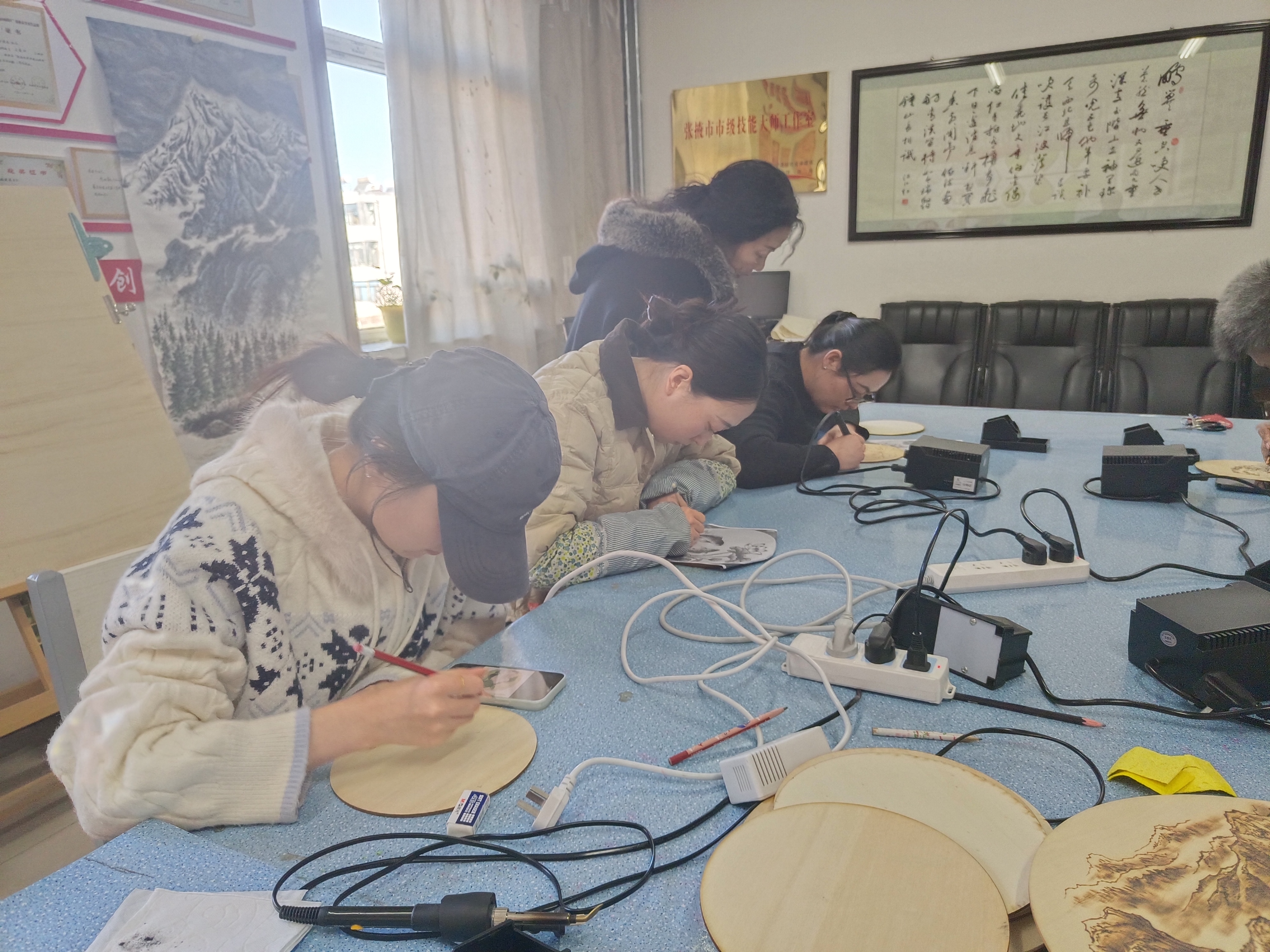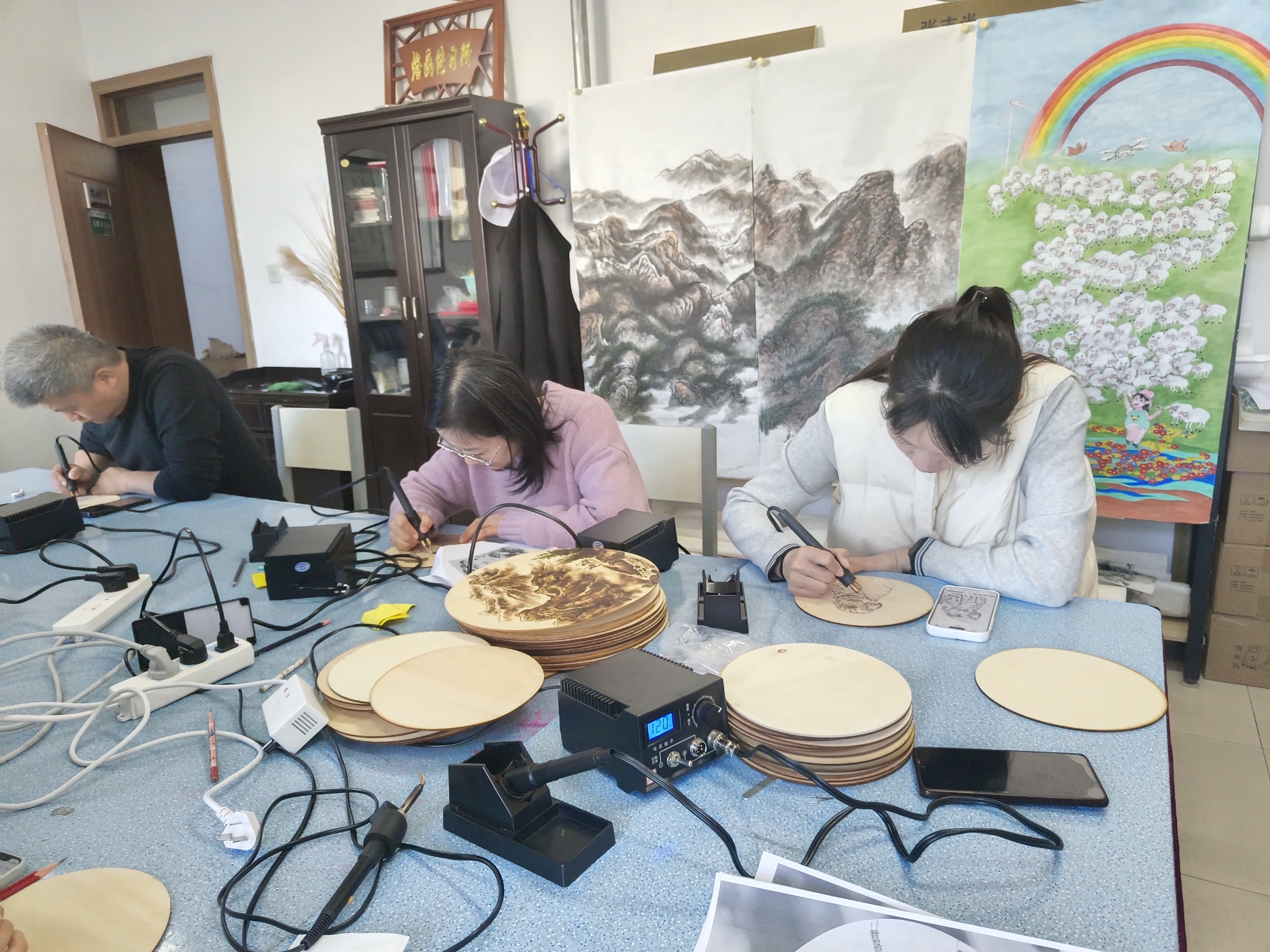 培训系统全面,老师从烙画历史渊源与文化内涵讲解入手,再带学员认识木板、电烙笔等材料工具并实操练习。技法教学兼顾传统与现代,既传授勾勒、皴擦等中国画技法在烙画中的运用,也指导学员通过控制烙笔温度、力度、速度打造独特烙痕效果。