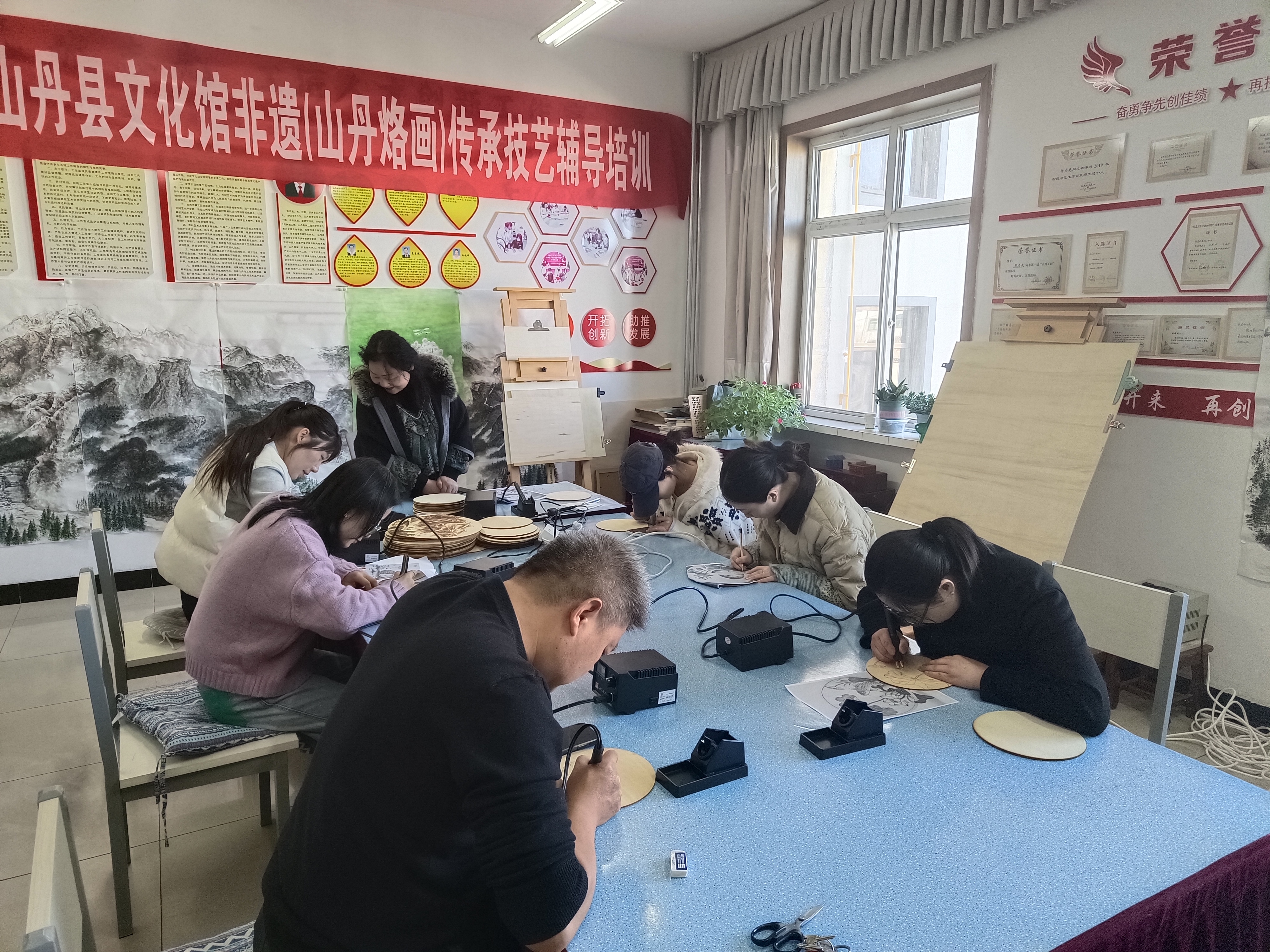 山丹烙画传习所近日依托县文化馆“一人一艺”公益辅导培训,由烙画市、县级非遗传承人张志光、张春玲授课,开展为期一周的烙画培训。