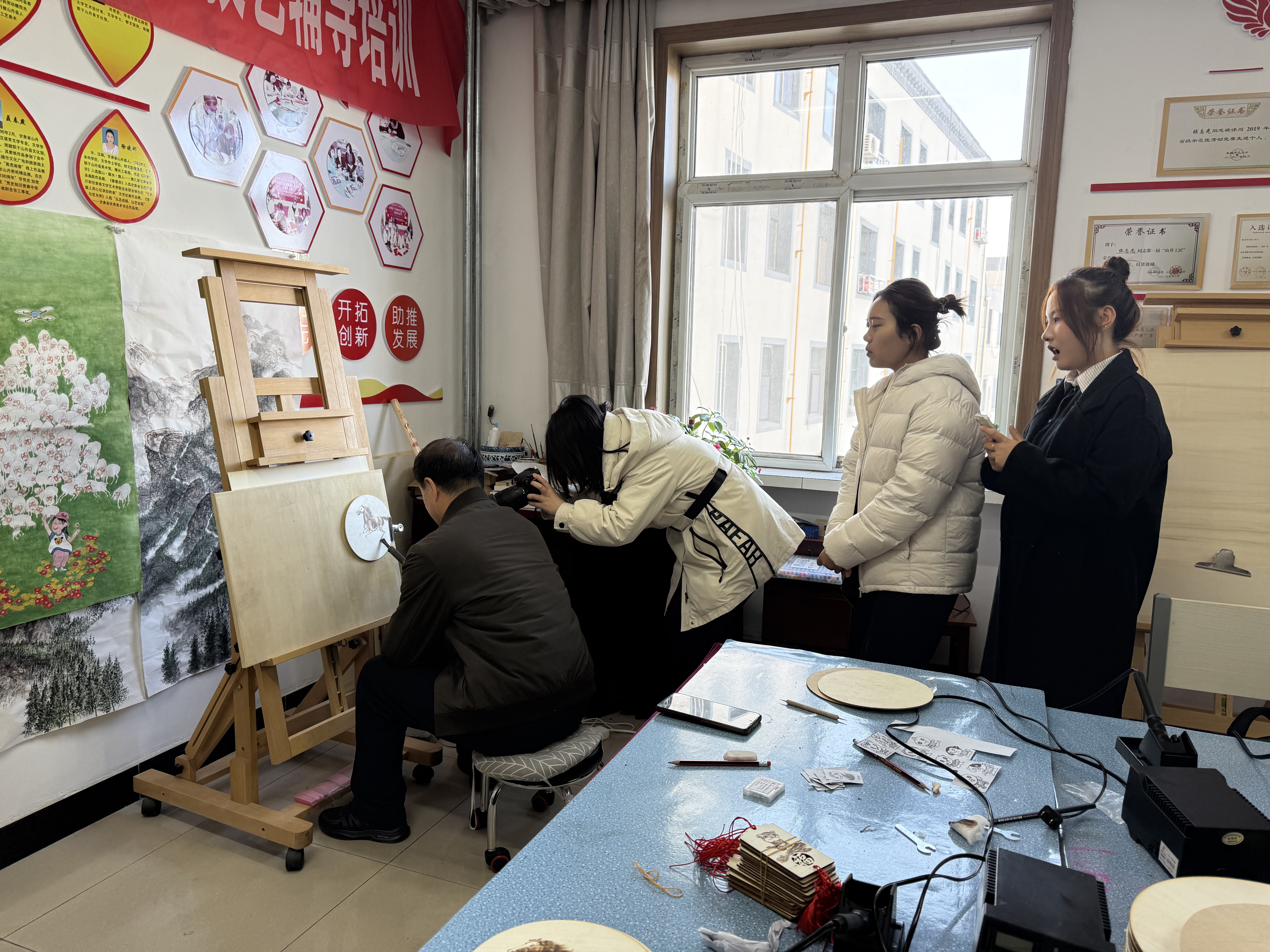 近日,山丹培黎学院师生走进山丹县文化馆,深度体验省级非遗“山丹烙画”技艺,此次活动是文化馆今年开展的第3场非遗研学实践活动。活动现场,电烙铁、椴木板等工具整齐摆放,非遗传承人现场示范讲解烙画技巧,手把手指导师生手持烙铁在木板上烫绘勾勒,感受“火笔生花”的独特艺术魅力。