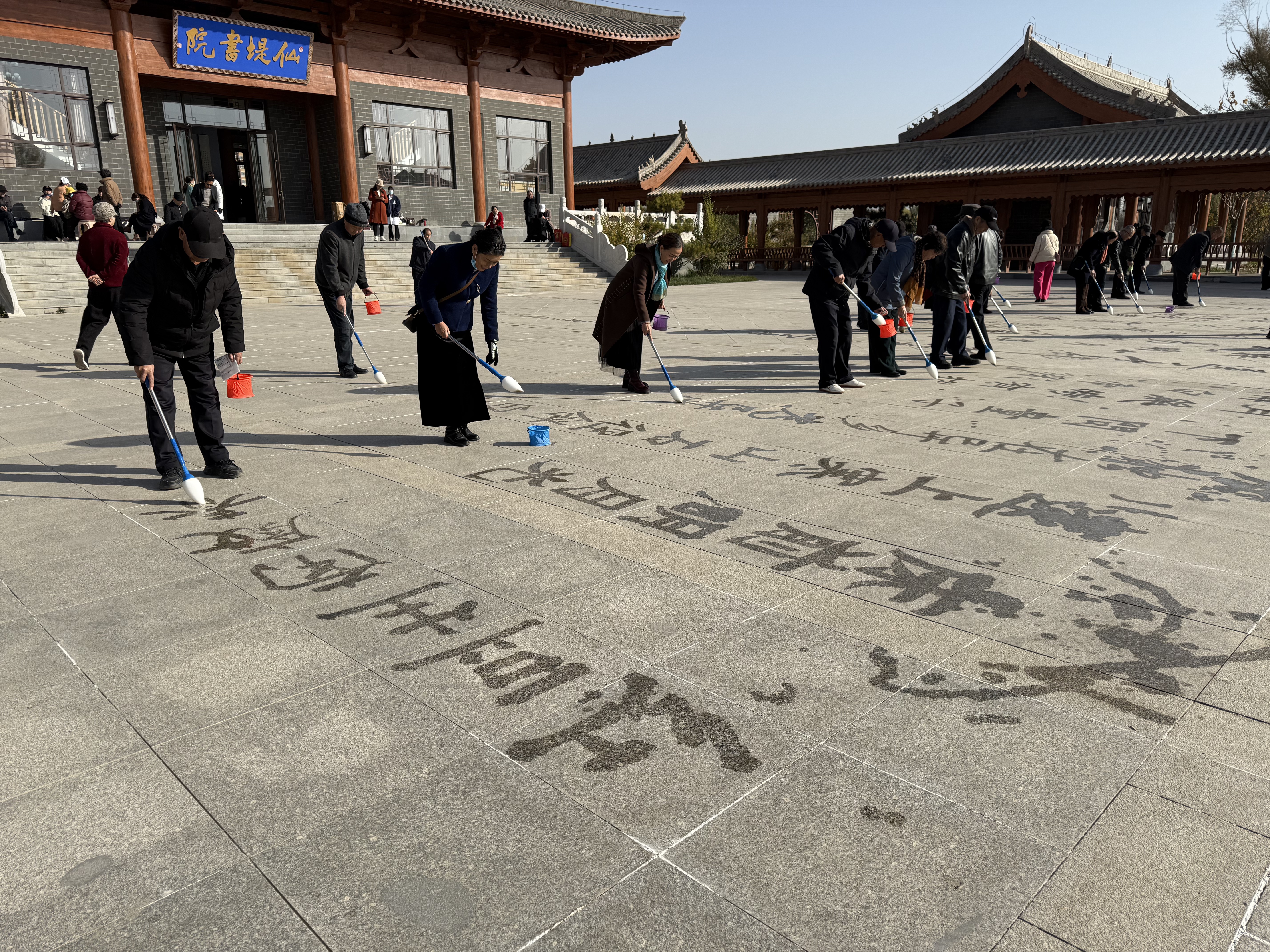 开幕式结束,只见书法爱好者们在广场上依次排开,手握一杆大笔,挥毫落墨、笔走龙蛇,弓腰悬臂,提气凝神,一列列刚劲有力的大字跃然在地,楷书、行书、隶书等字体引得市民驻足围观并称赞,呈现出健康书写、快乐书写、和谐书写的景象。